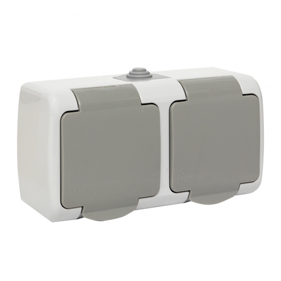Розетка 2ая мест, с/з с крышкой IP54 серый c защит.Мурманск